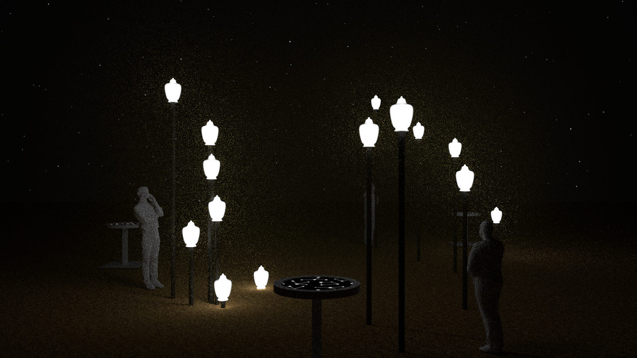 A Slice of Heaven transforms a familiar section of our local stellar neighborhood into a curious streetscape, shrinking 486 light-years of space down to 40 feet of walkable, lamp-lit passage. The collections of stars that we know as the Big and Little Dipper are uniquely visible in our tiny sliver of the universe - seen from any other perspective, they take on totally different shapes. By observing the stars from alternative positions, we are invited to think about our place in the universe and how the familiar night sky hides a depth we do not often contemplate.