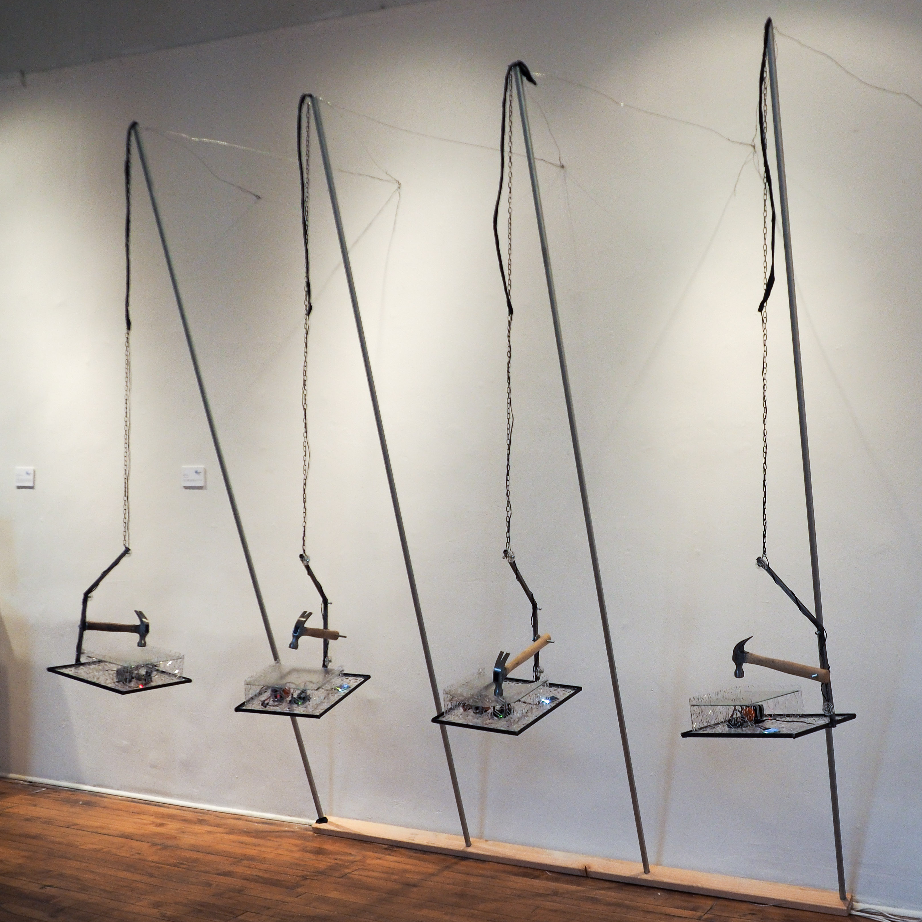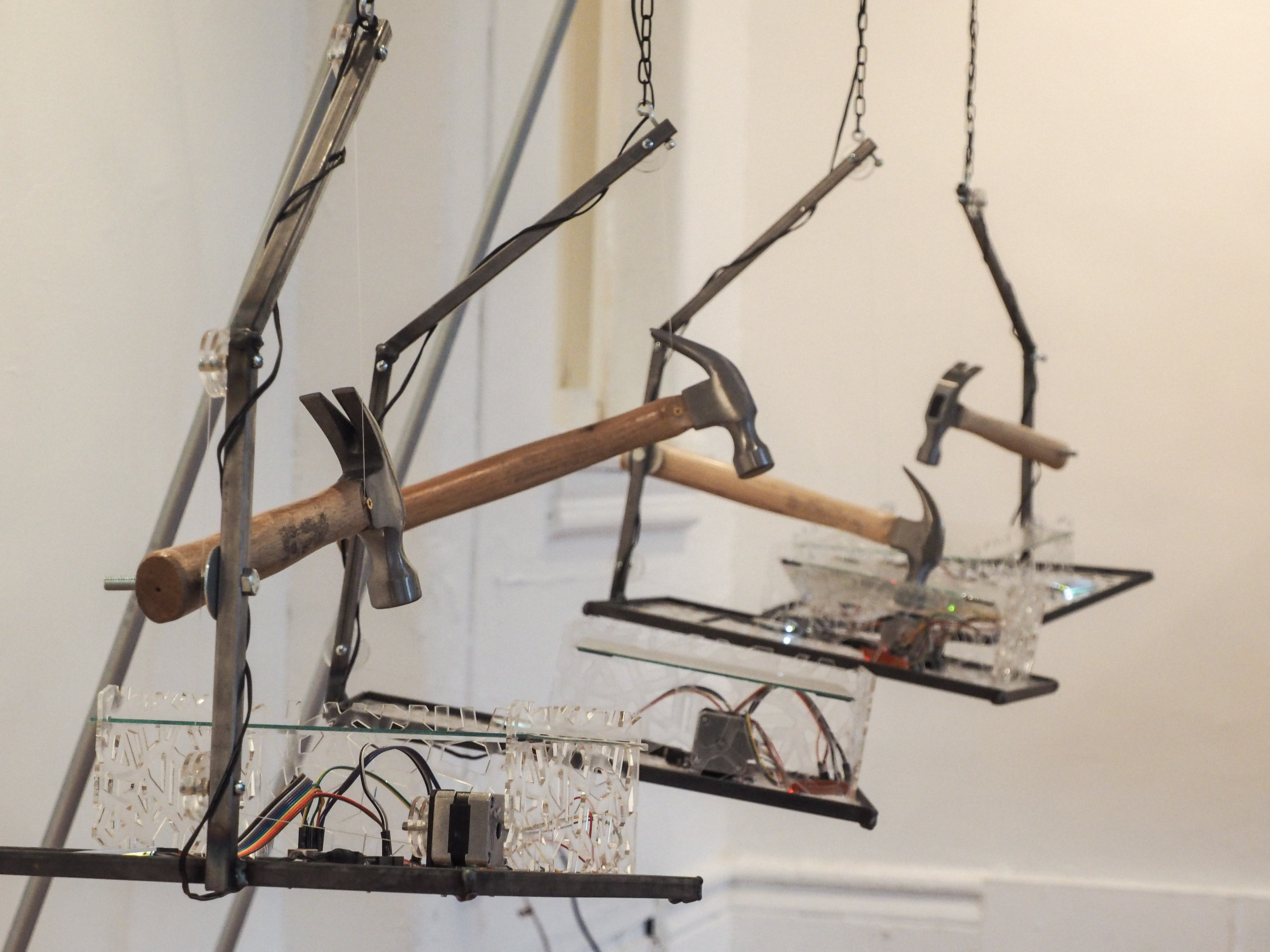 Exhibit description: Free will - the inherent choice in each of our actions - is a core feature of our lived experience. As these machines slowly render themselves inert, their motions are governed by chance. How different are our own decisions?